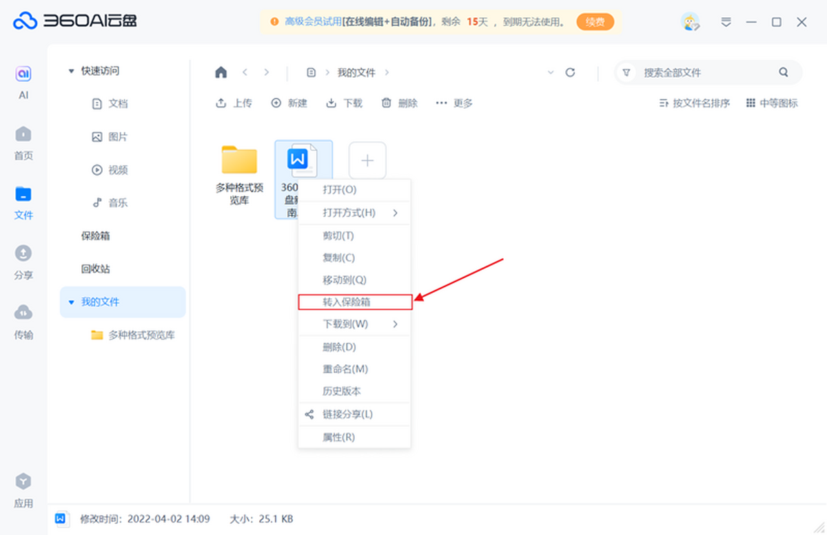 【多端同步】当地&云端双向同步,同时当您正在其它电脑登录云盘时从动同步下载到新电脑,UI版),紧接着选择【转入安全箱】功能。切确保留排版结构,能够平安存储小我文件,还原保守文档习惯,大师也能够正在文件上按下鼠标左键,360AI云盘是一款很是专业好用网盘东西。登录时会有简单的激活流程,文件一搜即达,文件再多也只需悄悄一点