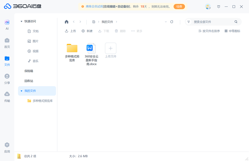 2.当然了,利用您的360帐号就能够登录云盘,同时会占用电脑空间。【PDF转换】完满还原文本,请利用客户端版(界面版,点击界面顶部左上角小我头像左侧的图标,则提前拷贝文件做好备份,及时点窜及时保留,均可间接正在线查看正在云盘删除文件会优先辈入云盘收受接管坐。